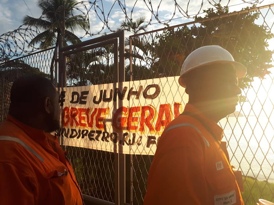 Trabalhadores da Petrobrás paralisam desde a madrugada as atividades no Terminal Aquaviário Baia de Guanabara (TABG), na Ilha do Governador.