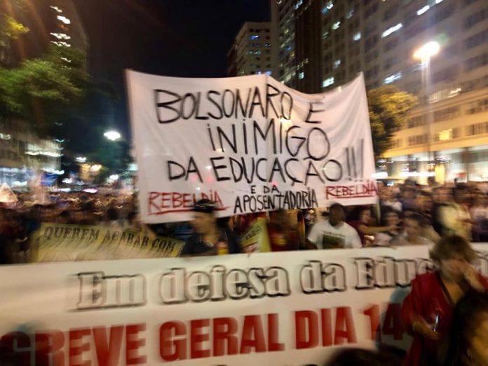 O governo ainda acabou de cortar verbas para universidades federais e institutos federais. Isso vai fazer com que, em muitos lugares, não terá dinheiro sequer para pagar as contas. Ainda por cima Bolsonaro teve a cara de pau de dizer que voltaria atrás nos cortes se a reforma fosse aprovada. Em primeiro lugar que isso é uma grande chantagem para a luta e a gente não vai cair em chantagem. Sabemos que tem sim dinheiro para a Previdência, basta tirar dos verdadeiros privilegiados, dos banqueiros. Em segundo lugar, porque o governo também quer privatizar a educação, e cortar faz parte desse projeto de desmonte!