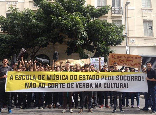Estudantes da EMESP, apoiados pelo Grêmio Estudantil, estão se organizando para lutar contra o sucateamento da escola, que hoje é uma referência na educação musical.