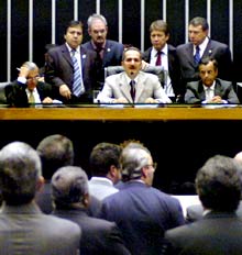Seria cômico se não fosse trágico. Após mais de um ano de intensa crise política que jogou na lama todas as intituições do Congresso, os únicos presos são os sem-terras, vítimas desse mesmo Congresso. O PT teve ainda a cara de pau de lançar uma nota pública à imprensa “repudiando os atos de violência na Câmara” e se solidarizando “com o Poder Legislativo e com o presidente da Câmara dos Deputados”.