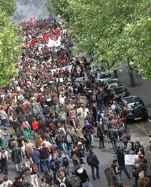Na Praça da Bastilha, entre cerca de trezentos jovens gritavam palavras-de-ordem contra Sarkozy. Eles jogaram paralelepípedos e outros objetos contra os policiais, que responderam com bombas de gás lacrimogêneo.