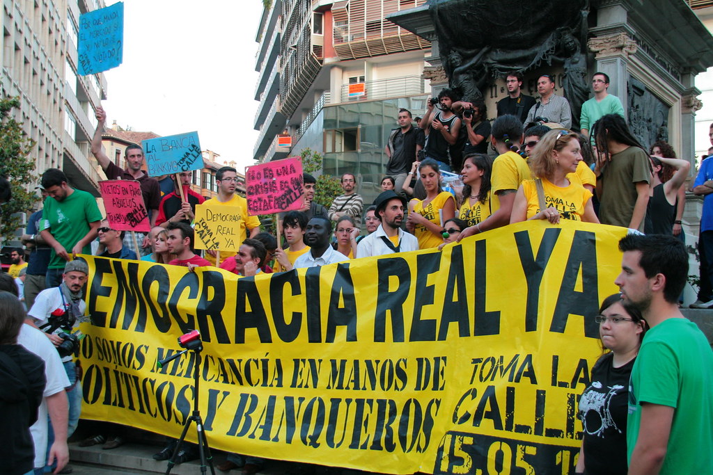 O outro destaque das mobilizações da juventude e populares contra os ditames da Troika do início da década de 2010, foi o fenômeno dos “Indignados” tomando as ruas de todo estado espanhol, contra os governos do PP e PSOE. Para dar uma alternativa a esse processo, alguns intelectuais de origem no stalinismo espanhol formularam a proposta do movimento Podemos[9].