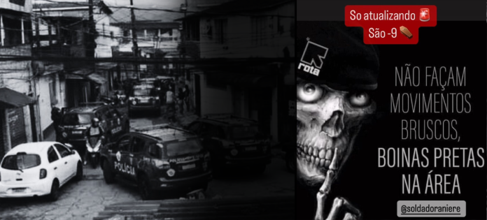 No domingo (30), ele publicou o “placar” macabro que indicava 12 x 1, em referência aos civis mortos em comparação com os policiais. Ele indica o local de um assassinato (Vila Edna/Guarujá) e dá o alerta: “Não façam movimentos bruscos. Boinas pretas na área”.