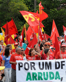 Militantes da Conlutas e do PSTU participaram do protesto, exigindo a prisão de todos os envolvidos e o confisco dos bens. O partido também defende um dia de greves e paralisações, como forma de impulsionar a mobilização pela saída de Arruda, do vice e dos deputados envolvidos.