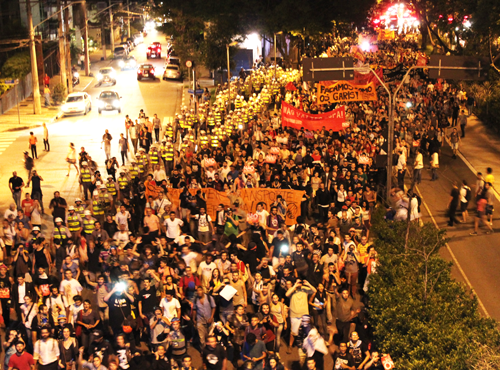 Na noite da última quinta-feira, dia 13 de março, aconteceu mais uma manifestação contra as injustiças da Copa do Mundo, na cidade de São Paulo. Foram mais de 2.500 jovens trabalhadores nas ruas, exigindo “chega de dinheiro FIFA e para as grandes empresas, mais dinheiro para saúde, educação, transporte e moradia”.