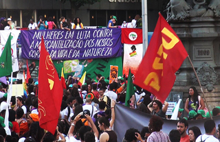 Cerca de 2500 manifestantes marcharam na manhã desta segunda-feira, 18 de junho, na Marcha das Mulheres na Cúpula dos Povos. A manifestação é mais uma das atividades que ocorrem no Rio de Janeiro, em paralelo à Rio+20. Quem passava pelo centro da cidade pôde testemunhar uma bela passeata feminista, que denunciou a farsa da “economia verde” e a situação dos setores oprimidos no país.