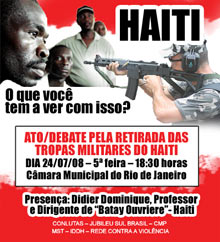 No dia 24 de julho, haverá um ato-debate no Rio de Janeiro (RJ) contra a violência. A aitividade vai combinar o debate sobre a invasão das tropas da ONU ao Haiti e a violência policial nos morros do Rio.