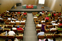 Na mesa de abertura, representantes do Instituto do Movimento Operário (IMO), da Conlutas e do PSTU saudaram a atividade. No auditório, estudantes; professores; operários; ativistas das oposições sindicais dos Correios, Rodoviários, Bancários, professores de Marcanaú; dirigentes dos sindicatos da Construção Civil, Confecção Feminina e da Educação, compareceram para prestar homenagens à revolução que mudou o mundo.
