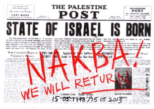No dia 29 de novembro de 1947, as Nações Unidas recomendaram a partilha da Palestina em dois Estados, um judeu e um árabe. Esse plano jamais foi integralmente implementado, no entanto, criou o cenário da guerra de 1948, durante a qual Israel foi unilateralmente estabelecido como um Estado judeu no dia 15 de maio, mediante a limpeza étnica de mais de três quartos do povo palestino, confiscando suas terras e impedindo o seu retorno. Essa guerra é lembrada pelos palestinos como a Nakba (catástrofe) e deu início à mais longa ocupação no mundo contemporâneo, a qual já dura 65 anos. Desde então, as políticas e práticas israelenses violam a lei internacional, incluindo a Quarta Convenção de Genebra e a Convenção Internacional de Supressão e Punição do Crime de Apartheid.