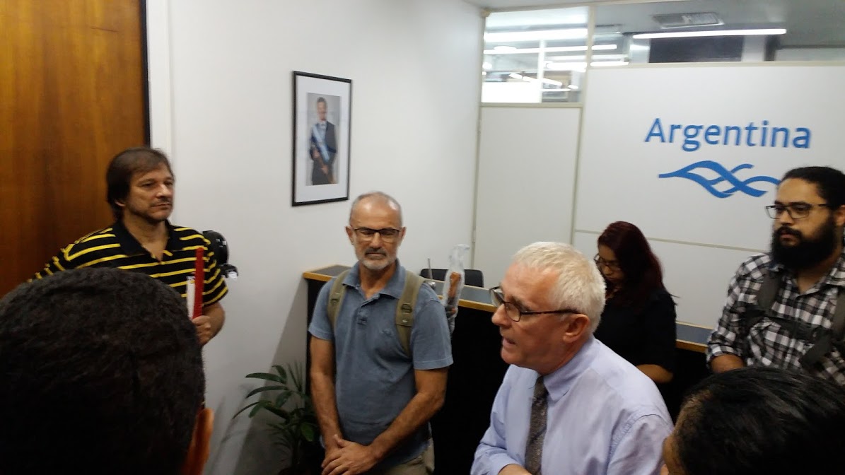 “A luta dos trabalhadores na Argentina é a mesma que a nossa, é contra os ataques dos governos e dos patrões e a criminalização das nossas lutas, e a recusa em conversar com a gente aqui é uma pequena mostra de como o governo Macri trata as manifestações”, afirmou Fábio Bosco, do PSTU-Brasil.