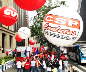 CSP-Conlutas defende no protesto unidade entre os setores em greve e luta contra reforma da Previdência e o ACENa manhã desse dia 20 de setembro, as diversas categorias em greve realizaram um ato unificado na Avenida Paulista. O protesto reuniu bancários, metalúrgicos, trabalhadores dos Correios, químicos e petroleiros, aglutinando cerca de 500 pessoas no centro financeiro de São Paulo. Participaram também centrais como CSP-Conlutas, CUT, CTB, Força Sindical e Intersindical.