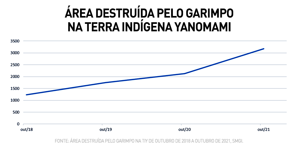 A denúncia das atrocidades contra os indígenas yanomamis não é um caso isolado. Faz parte da ofensiva brutal contra os indígenas perpetrada por garimpeiros, mineradoras e o agronegócio, amparados e incentivados pelo governo Bolsonaro. Segundo o Cimi (Conselho Indigenista Missionário), mais de 20 mil garimpeiros cercam a Terra Indígena Yanomami na região. A TI Yanomami é a maior reserva indígena do país, e sofre desde os anos 1980 com a mineração ilegal, prática que vem se intensificando de forma exponencial nos últimos anos. Relatório divulgado pela Hutukara Associação Yanomami e a Associação Wanasseduume Ye’kwana, a partir de mapeamento e fotografias aérea, mostra que o garimpo na região cresceu 3.350% entre 2016 e 2020. Só no ano passado, aumentou 46% em relação ao ano anterior.