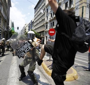 Gregos realizam maior e mais radicalizada onda de protestosA quarta greve geral na Grécia este ano paralisou o país e incendiou a capital Atenas nesse dia 5 de maio. A greve paralisou os serviços...