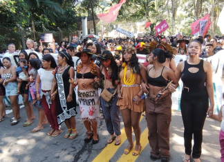 Dia de luta contra o Marco Temporal marca as escadarias do Teatro Municipal em...