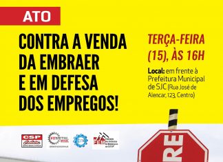 Um protesto na próxima terça-feira (15), às 16h, em frente à Prefeitura de São José dos Campos (SP), vai cobrar um posicionamento do poder público local e estadual contra a venda da Embraer para...