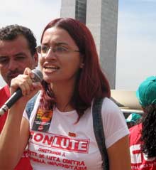 Luíza Oliveira, do Centro Acadêmico de Sociologia da UnB (Caso) e colaboradora da Conlute, entusiasmou trabalhadores e estudantes em sua fala. Ela ressaltou a importância da luta unificada de todos os setores contra os ataques do governo Lula. Dirigindo-se aos estudantes, firmou o compromisso da Conlute na luta contra a reforma universitária e na construção da Frente de Luta Contra a Reforma Universitária.