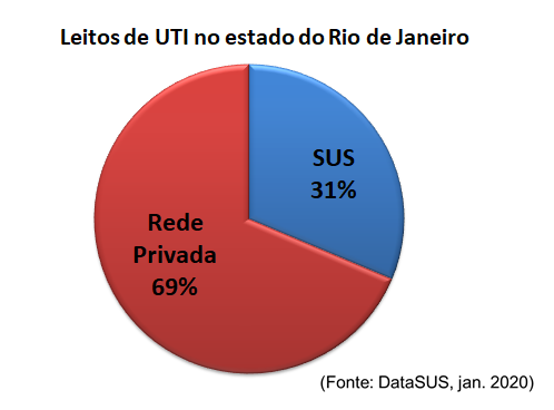 No estado do Rio, até janeiro deste ano, o SUS contabilizava aproximadamente 1.700 leitos de UTIs. Na rede privada existem mais que o dobro deste tipo leito (quase 4 mil), no entanto, estão disponíveis para um número muito reduzido de pacientes/clientes. A ocupação de todos os leitos de UTI do estado (públicos e privados) beira a 70%, segundo levantamento recente do Ministério da Saúde . A questão é que os leitos públicos estão saturados, como é o caso do município do Rio, que possui quase 50% de todas as UTIs do estado, em que a ocupação é de 100%, conforme afirmou a Secretaria Municipal de Saúde.