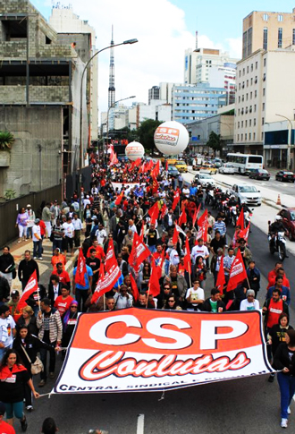 A passeata reuniu aproximadamente 2.500 pessoas, segundo os organizadores. A imprensa chegou a relatar 4 mil. Na sua maioria delegações nacionais que participaram do congresso da central. Entre eles, trabalhadores da hidrelétrica de Belo Monte, da Comperj (Complexo Petroquímico do Rio de Janeiro), ambos em greve; metalúrgicos de São José do Campos, trabalhadores rurais de Brasiléia e Xapuri (AC), bancários do Rio Grande do Norte, professores e representações quilombolas de diversos Estados, metroviários de São Paulo, Rio de Janeiro e Brasília, servidores públicos federais, estaduais e municipais, operários de Suape (PE), rodoviários e operários da construção civil de Fortaleza (CE), operários da construção de Belém, movimentos populares de São Paulo, moradores do Pinheirinho, movimentos LGBT, de mulheres e da luta negra, entre muitos outros movimentos e categorias.