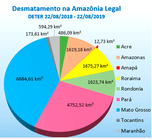 As informações dão conta de um avanço do desmatamento. Entre 22 de agosto de 2010 e a mesma data em 2010, a Amazônia Legal registrou um total de 17.822,04 km² de floresta desmatada. Os destaques negativos são Mato Grosso e Pará, seguido por Roraima, Rondônia e Amazonas.