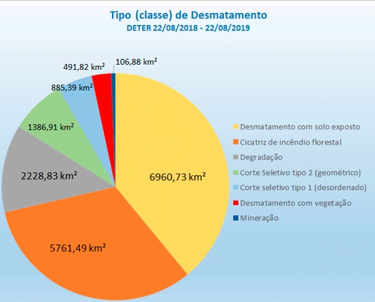 Chama atenção o fato de que o desmatamento se concentra na classe de desmatamento com solo exposto e com queimadas florestais, o que agrava ainda mais o problema porque são mais muito mais agressivos, são o que se poderia chamar verdadeiramente de terra arrasada.