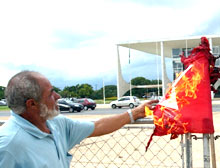 O pernambucano José Cândido de Lima, o zé resolveu expressar individualmente sua insatisfação com o governo Lula e foi até a Praça dos Três Poderes para queimar a bandeira do PT. Diante de suas próprias dificuldades financeiras e desiludido com o governo petista, o mecânico desempregado disse preferir “mil vezes o inferno“ a votar de novo no PT. Ele é eleitor petista desde 1985 e depositou grandes esperanças na eleição de Lula.