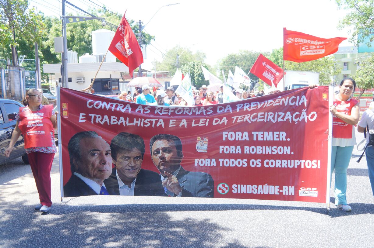 O Dia Nacional de Paralisações e Greves começou com uma manifestação dos servidores da saúde pelas ruas de Natal. Cerca de 300 trabalhadores se concentraram em frente ao maior hospital do estado, o Walfredo Gurgel e saíram em caminha na Av. Salgado Filho. Logo após, os servidores se juntaram a diversas categorias do funcionalismo público estadual, em frente à sede do governo para um novo protesto.