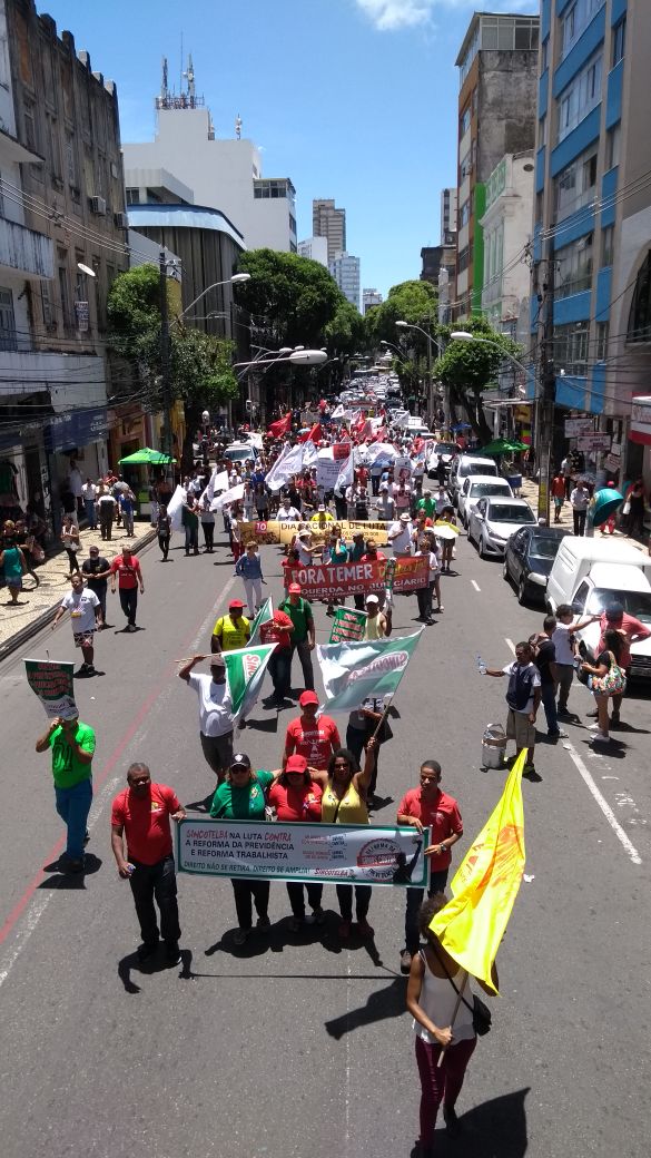 “Se aquele bando de corruptos esperava que a reforma trabalhista fosse chegar e ser comemorada, estamos aqui pra mostrar que não, que estamos nas ruas pra dizer que não vamos deixar entrar essa reforma trabalhista“, afirmou Luiz Carlos Prates, o Mancha, da Secretaria Executiva Nacional da CSP-Conlutas, no ato unificado na capital paulista. Mancha também exigiu das outras centrais a convocação imediata de uma Greve Geral, tão logo a reforma da Previdência seja colocada em votação no Congresso Nacional. “Se eles insistirem em aprovar a reforma da Previdência, o Brasil vai parar“, defendeu.