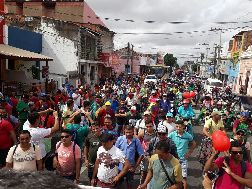 Trabalhadores da Construção Civil cruzaram os braços e fizeram passeata até a Praça da Bandeira, centro de Fortaleza.