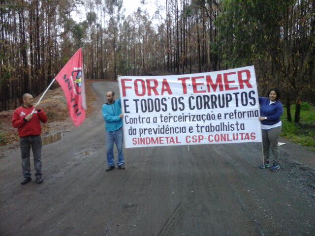 Já os operários de várias fábricas Vglor, Dormer, Brassinter, Voestapine, entre outras, além de trabalhadores químicos e ativistas da juventude se concentravam desde as 9h em frente à fábrica Sandvik. Às 9h30 os metroviários e movimentos se unificaram e saíram em passeata pela Av Nações Unidas em direção à Ponte do Socorro. “É fundamental a unidade dos moradores da periferia e operários metalúrgicos, e aqui, na luta direta, estamos demonstrando que só a mobilização pode derrotar as reformas e colocar pra fora o Temer”, disse o dirigente do Luta Popular e militante do PSTU, Avana.