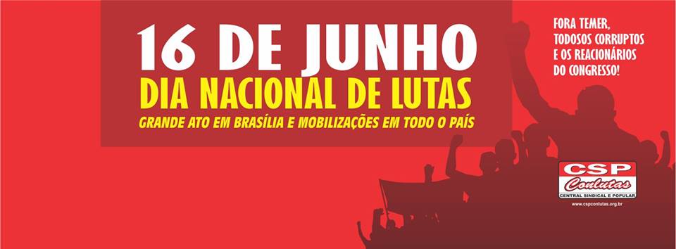 Este dia nacional de lutas é uma iniciativa das entidades que organizam o Encontro Nacional da Educação e do Fórum das Entidades Nacionais dos Servidores Federais. A CSP-Conlutas, que também está na organização dessas atividades, participará exigindo o Fora Temer, todos os corruptos e os reacionários do Congresso, a construção da Greve Geral contra os ajustes e por um governo dos trabalhadores, sem patrões. Tal política, votada na recente Coordenação Nacional da Central, reforçará bandeiras que serão levantadas por diversas entidades no dia 16, como reforça Rizzo: “Os lutadores vão protestar também por não reconhecerem neste governo e neste Congresso infestado de corruptos qualquer legitimidade para impor as medidas de ajuste. Será um momento de reunião de forças na perspectiva da continuidade da luta, que exige, ao nosso ver, a construção de uma greve geral”, conclama o presidente do Andes-SN.