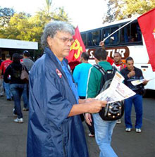 Além da panfletagem os dirigentes que se revezavam no carro-de-som para pedir a solidariedade dos metalúrgicos com a luta do povo haitiano contra a ocupação das tropas da ONU lideradas pelo Exército brasileiro.