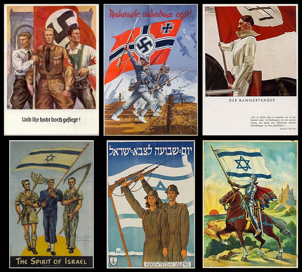 Esse tipo de “arte-propaganda” existia antes da Alemanha Nazista e, com sua queda, acabou ganhando força. O sionismo, que apertou as mãos nazistas em 1933, saiu ainda mais fortalecido com o fim da Segunda Guerra. Afinal, foram as grandes vítimas. Dois anos depois da Guerra é fundado o Estado de Israel e formalizada a ocupação racista da Palestina pela ONU. A política de assentamentos se fortalece e junto com ela a propaganda heróica, de refundação do povo, do auto sacrifício e do engajamento emocional em prol desse projeto de Estado-nação.
