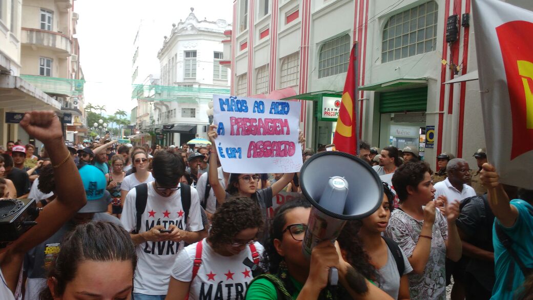 Nesta segunda-feira (15) aconteceu em Florianópolis um ato contra o aumento da tarifa. O protesto seguiu pelas ruas do centro com faixas e bandeiras. Em um terminal, os manifestantes liberaram as catracas para os passageiros.