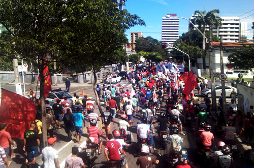 Ao todo, cerca de 3 mil pessoas, entre operários e ativistas do Movimento dos Trabalhadores Sem Terra (MST), Movimento dos Conselhos Populares (MCP) e Assembleia Nacional de Estudantes – Livre (ANEL), seguiram em marcha até a prefeitura, onde se juntaram aos servidores públicos federais e militantes do Movimento dos Trabalhadores Sem Teto (MTST). Uma comissão entregou ao prefeito Roberto Cláudio uma pauta de reivindicações.