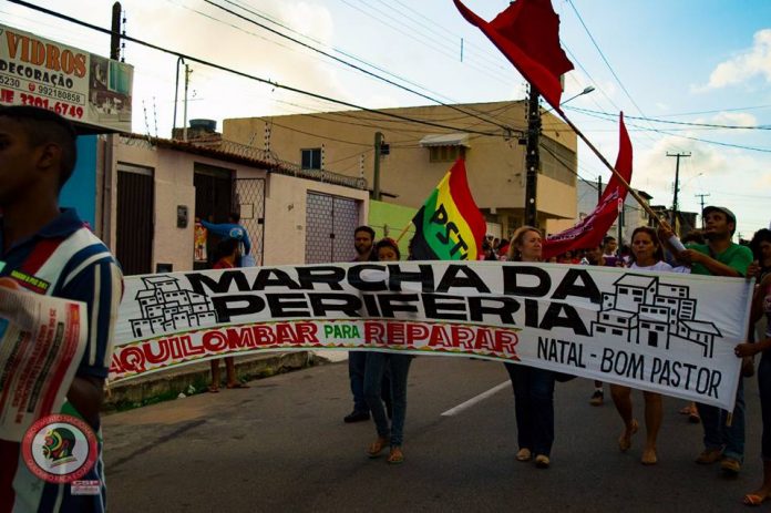 Em Natal, a periferia gritou: “Aquilombar para reparar!” A I Marcha da Periferia em Natal foi realizada nesta sexta-feira, 18 de novembro, e reuniu cerca de 300 pessoas. Foi muito emocionante ver um ato majoritariamente jovem e feminino, com uma presença significativa de LGBT’s.