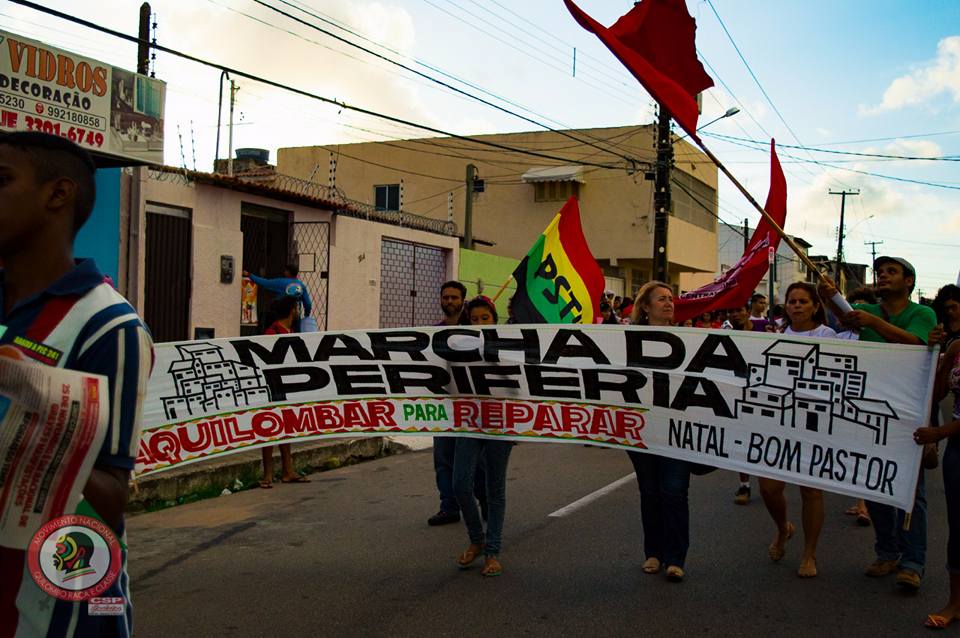 As palavras-de-ordem contra o racismo, o machismo e a LGBTfobia se somaram às lutas contra os ataques dos governos. Pela primeira, vez os moradores do Bom Pastor, periferia de Natal, presenciaram um ato em reverência às lutas de negros e negras. Foi marcante a presença dos estudantes das Escolas Estadual Jean Mermoz e do Conselho Comunitário do Bom Pastor. Levaram para as ruas seus cartazes de protesto contra o fechamento da escola, que, na luta, nesta semana, conseguiram reverter. As meninas da escola abriram a marcha, empolgadas com seus turbantes, realçando a beleza da negritude.