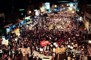 Quinta-feira vai ser maior! Esse era o grito dos milhares que se aglomeraram no Largo Zumbi dos Palmares onde teve fim o ato. A manifestação que será a 8º organizada pelo Bloco de Luta Contra o Aumento de Passagens já tem hora e local para acontecer. O movimento cresce, se multiplica. Os manifestantes exigem a revogação do aumento do último dia 25, lutam pela redução da tarifa e pela garantia dos direitos (meio passe estudantil e passe livre para idosos) históricos. Através das redes sociais, com mobilização nas universidades, escolas e sindicatos e principalmente nas ruas a população de Porto Alegre apóia e participa cada vez mais dos atos!
