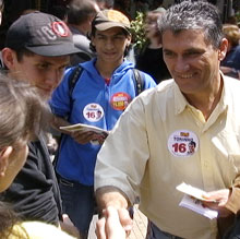 Mas não seria jogar o voto fora escolher um candidato que não está entre os primeiros colocados nas pesquisas? O Toninho é um cara que já está ligado à luta. Deixar de votar nele porque ele não está entre os primeiros nos índices de intenção de voto é um grande engano, é deixar de aproveitar uma oportunidade de renovação, afirma o estudante universitário Felipe Daniel.