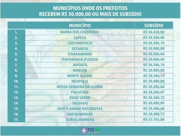 Os prefeitos justificam que a reforma é necessária porque “em algum momento não haverá mais dinheiro para manter o Brasil em funcionamento”. Justo eles, que em 17 municípios de Sergipe, recebem um salário superior a R$ 30 mil. A média do salário de um prefeito no estado é de R$ 17,5 mil e dos vices é de R$ 11,7mil.