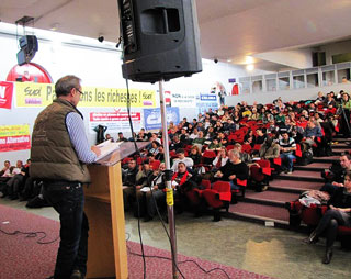 O auditório da Bolsa do Trabalho (Casa dos Sindicatos) em Saint Denis, nos arredores de Paris, ficou lotado durante o encontro sindical internacional realizado neste final de semana.