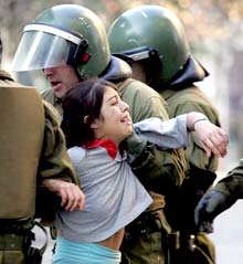 Há três meses no poder, a presidente chilena, Michelle Bachelet, do Partido Socialista, enfrenta com os protestos sua primeira crise. Já prevendo dias difíceis no decorrer da semana, disse no domingo passado que, ao seu ver, as exigências dos estudantes são justas. “Queremos que a educação no Chile seja cada dia melhor. Estamos completamente de acordo que será preciso mudar uma série de coisas para que a educação seja de melhor qualidade para todos, para as escolas públicas e privadas“. Naquele momento os protestos ainda não haviam tomado conta do país. E nem a polícia havia reprimido as manifestações. Depois, para tentar não se responsabilizar pela violência dos carabineros, condenou a repressão e demitiu o chefe da polícia.