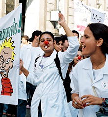 Na quarta-feira, dia 18 de maio, a agitação começou desde às 7h da manhã, com um piquete na porta da Estácio de Sá. Valeu de tudo: nariz de palhaço, apitaço, muitas palavras de ordem e músicas contra o aumento, adesivos, faixas, bumbo e carro de som. Os estudantes contaram com o apoio da Conlute, do DCE Estácio Nova América, do DCE da PUC e do DCE da Rural. Depois de pararem completamente as aulas e as provas, os 700 estudantes de Medicina, ajudaram a trancar o Centro do Rio de Janeiro.