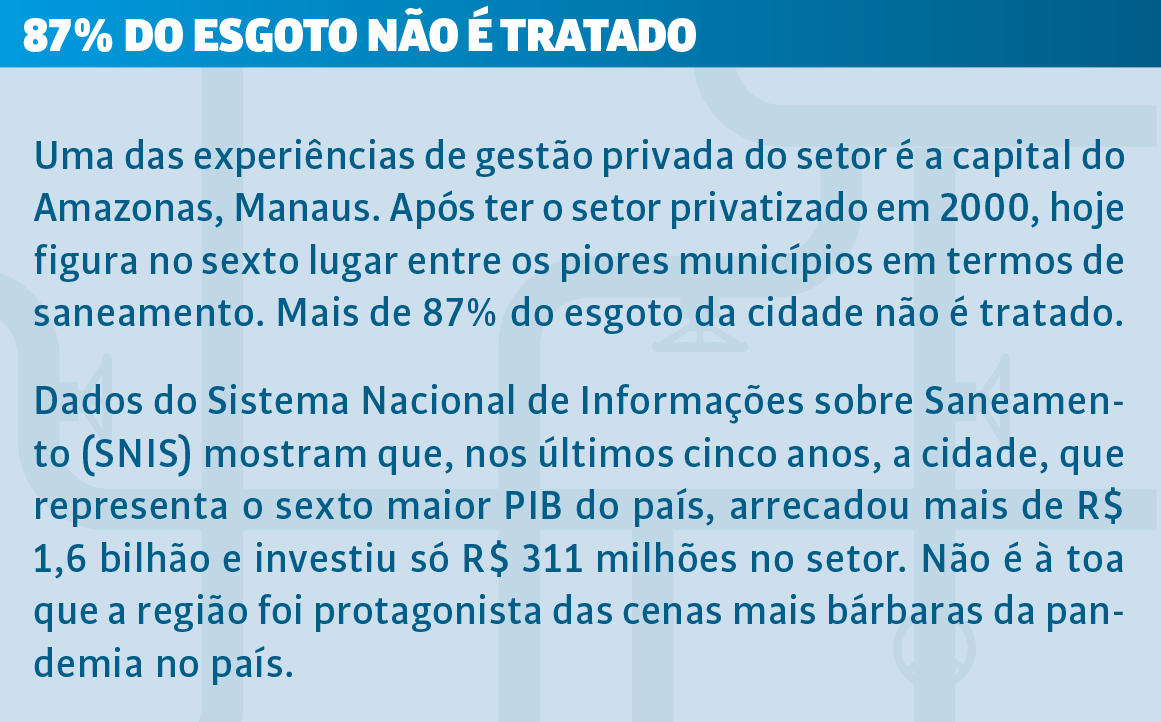 Não é difícil imaginar o que vai acontecer em relação ao saneamento. Nos grandes centros urbanos que já contam com infraestrutura, as tarifas vão aumentar. Onde não tem, vai continuar não tendo.