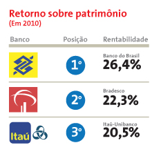 Entre os 10 bancos mais rentáveis da América, o primeiro, o segundo e o terceiro são brasileiros (gráfico).