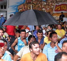 A greve dos trabalhadores da construção civil, iniciada no último dia 22, continua forte. No dia 29, terça-feira, os piquetes foram realizados mesmo sob a chuva que caía desde a madrugada. A chuva alterou os planos iniciais do sindicato, que planejava piquetes nos canteiros de obras nas várias regiões e seguiriam em passeatas convergindo na Praça de Portugal, no bairro de Aldeota.