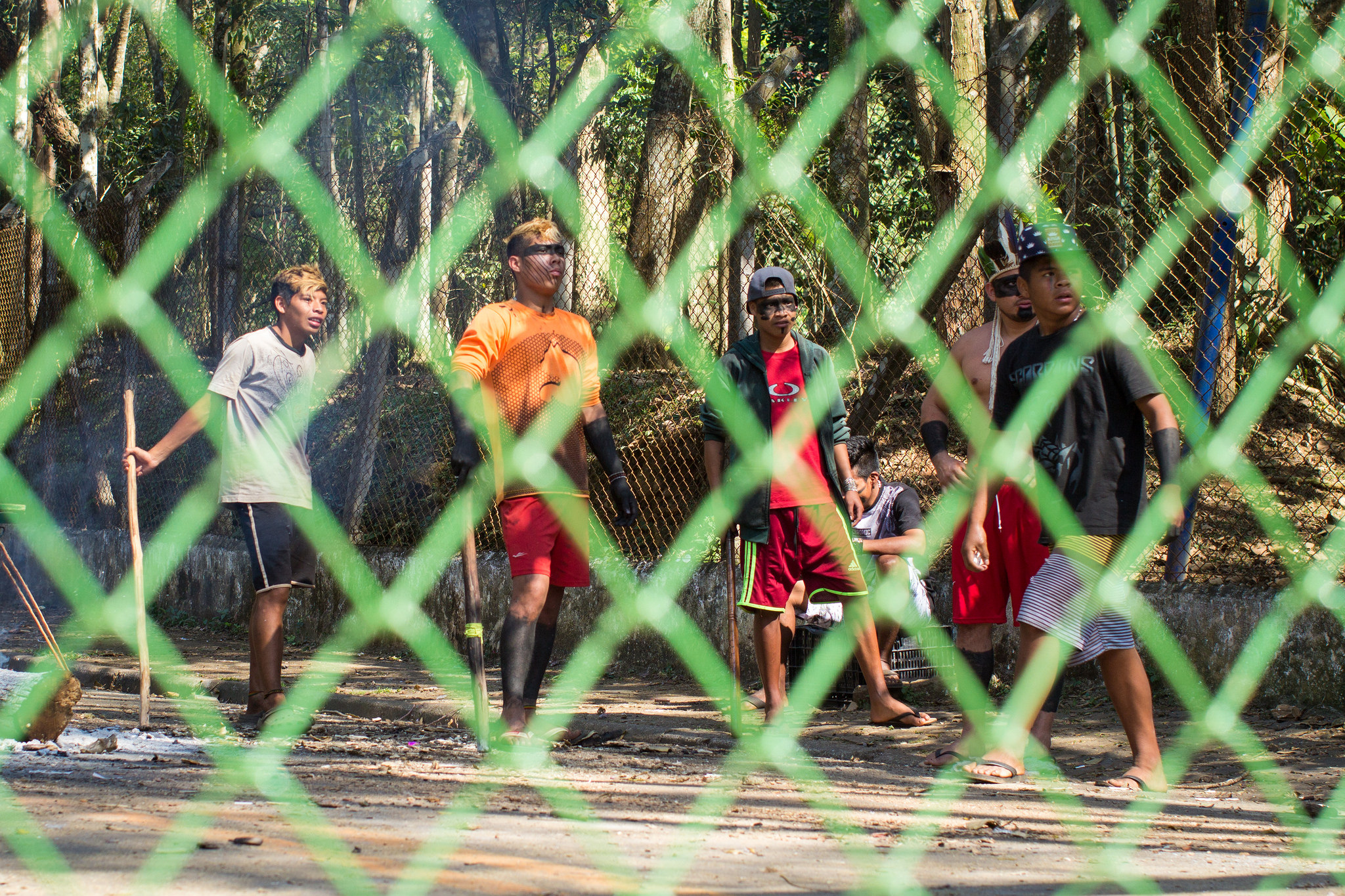 Do outro lado do portão, os mais jovens cantavam e rezavam. Às vezes, gritavam uns para outro algo em guarani. Às vezes, gritavam em português mesmo: “Cadê o papel?“, se referindo às decisões do governo e duvidando da palavra dos representantes do estado.