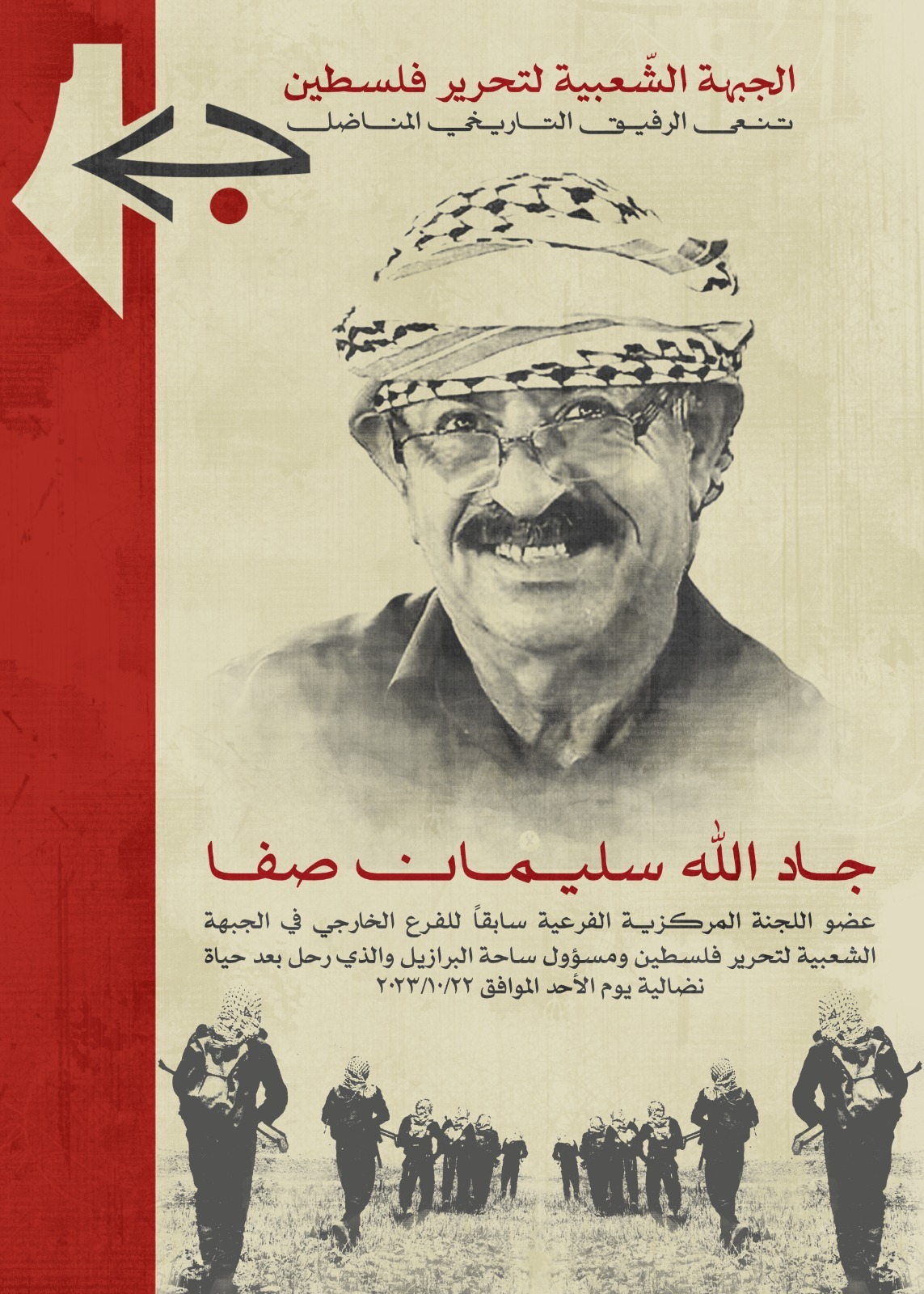 No se solidarizamos com a comunidade palestina, com a Frente Popular e, especialmente, com a família de Jadallah Suleiman neste momento tão difícil. Nossas mais profundas condolências a toda a sua família, camaradas e amigos que como ele estão comprometidos com a causa palestina e com a libertação da ocupação sionista.