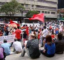 “A classe trabalhadora ainda sofre o preconceito com a homofobia, o machismo e o racismo”, disse Fábio Bosco, do PSTU. “A presidente Dilma, dia após dia, diz que o Brasil está bem, está crescendo, mas para a classe trabalhadora, nada está vindo”, falou. Bosco destacou as lutas que estão acontecendo na Europa e no mundo árabe, em que os trabalhadores se levantam para defender seus direitos, dizendo que temos de nos levantar também.