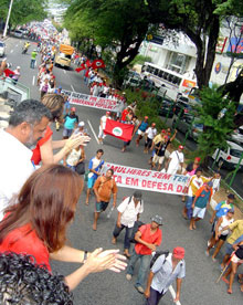 A manifestação teve início em frente ao Cefet (Centro Federal de Educação Tecnológica). Em seguida, todos saíram em passeata até a “Casa da Dinda”, como é conhecido o prédio da Previdência Social, no centro da cidade. Na ocasião, representantes de entidades sindicais, estudantis, do MST e de partidos políticos – PSOL e PSTU – criticaram duramente a política econômica e as reformas do governo Lula, que acaba com direitos fundamentais da classe trabalhadora.
