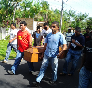 No enterro do companheiro Mamede, centenas de trabalhadores e ativistas estiveram presentes prestando homenagens e solidariedade a sua família e a sua luta. Oito companheiros do PSTU estiveram presentes. O companheiro Cleber Rabelo (PSTU), eleito vereador de Belém, também esteve presente e compôs a comissão que foi à delegacia para cobrar agilidade na apuração do crime e respeito aos moradores dos assentamentos.